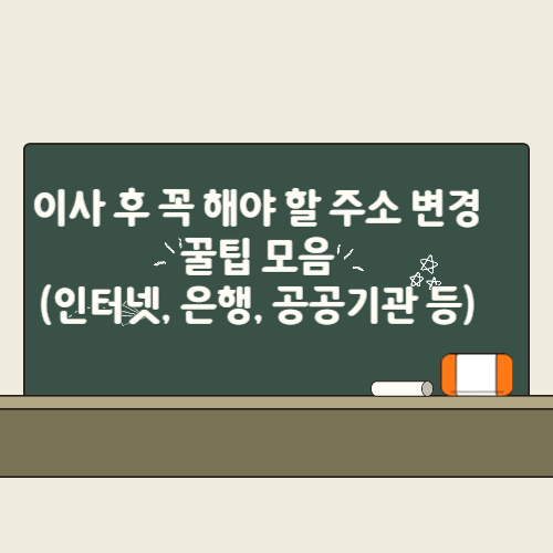 이사를 마쳤다면 짐 정리만큼 중요한 것이 바로 주소 변경입니다.제때 처리하지 않으면 요금 고지서 누락, 택배 분실, 주민등록 문제까지 생길 수 있어요. 이 글에서는 이사 후 꼭 확인해야 할 주요 기관별 주소 변경 리스트와꿀팁을 한눈에 보기 쉽게 정리했습니다. 1. 정부,공공기관 주소 변경 📌 주민등록 주소지 이전방법: 정부24 → 전입신고기한: 이사 후 14일 이내필요: 공동 인증서 (구 공인인증서), 임대차 계약서✅ 전입신고를 하면 자동으로 세대원 정보, 건강보험 주소도 연동됨📌 운전면허 주소 변경방법: 도로교통공단 홈페이지 → 마이페이지또는 가까운 운전면허시험장 방문📌 자동차 등록지 변경기한: 전입 후 15일 이내방법: 차량등록사업소 또는 자동차민원 대국민포털❗ 미변경 시 과태료 부과 (10만..