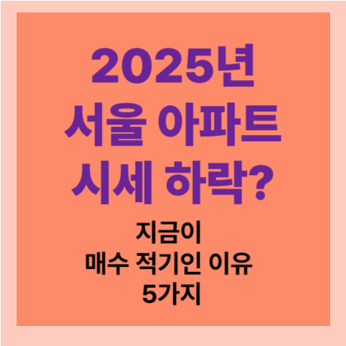 2025년 서울 아파트 시세 하락? 지금이 매수 적기인 이유 5가지
